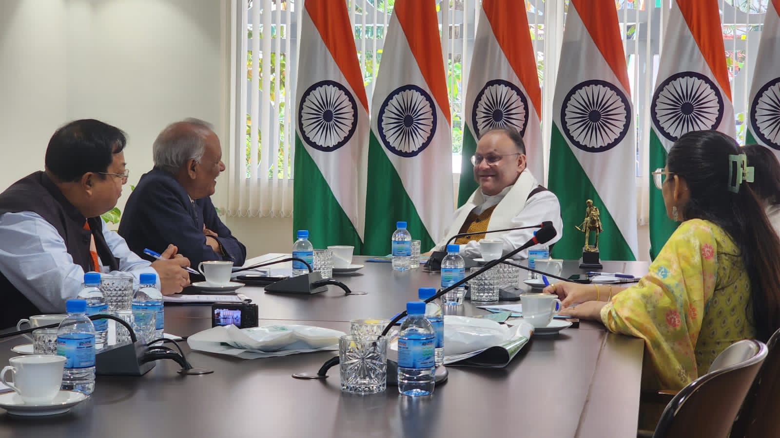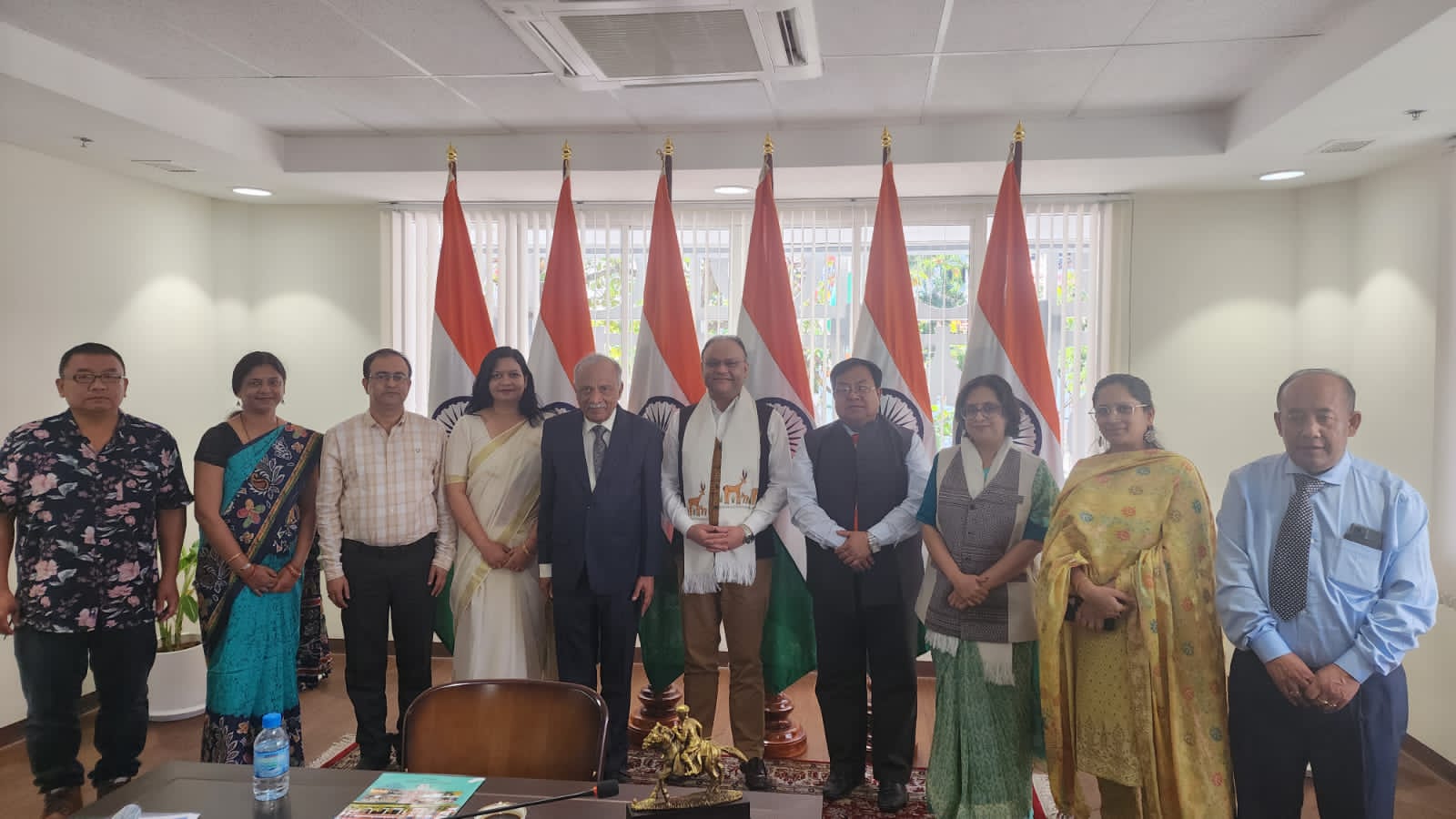 Dr. Anupam Mishra, Hon’ble Vice- Chancellor, CAU Imphal, met with Shri Nagesh Singh, Hon’ble Ambassador of India in Thailand, at the Indian Embassy in Bangkok on December 22, 2023. The CAU Imphal team which met with the Ambassador also included Prof. Ph. Ranjit Sharma, DEE, CAU Imphal.