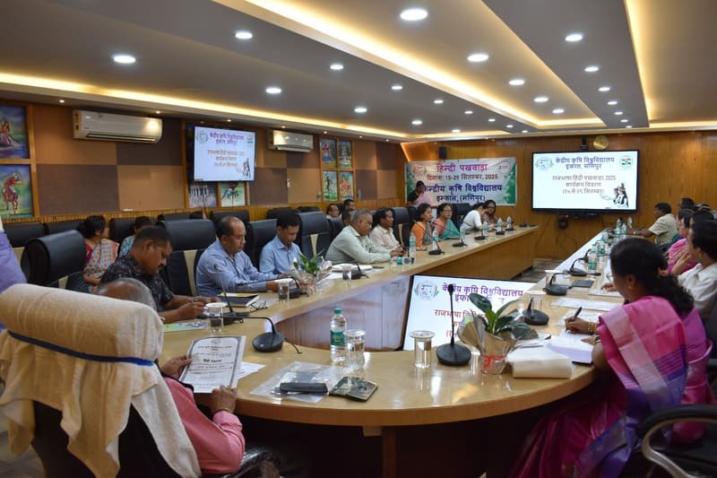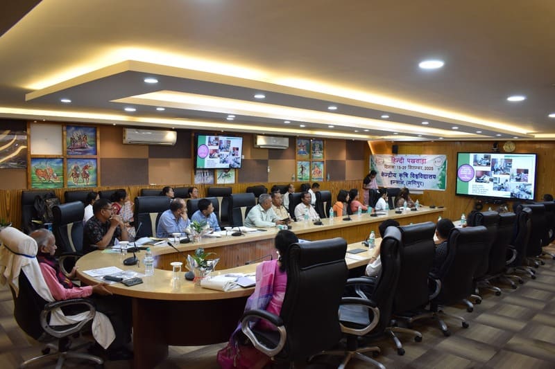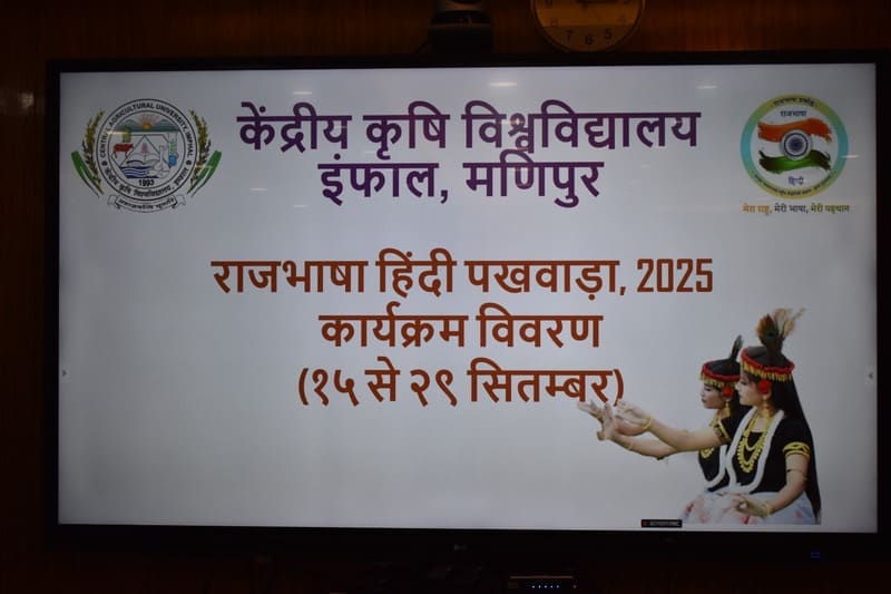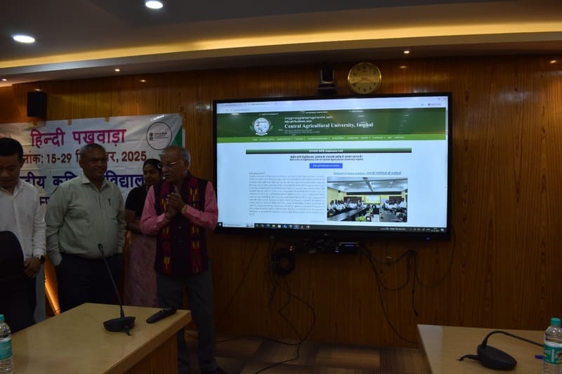 केन्द्रीय कृषि विश्वविद्यालय इम्फाल के मुख्यालय में 14-29 सितम्बर, 2025 तक आयोजित हिन्दी पखवाड़ा का समापन समारोह 1 अक्टूबर 2025 को आयोजित किया गया | समारोह को डॉ अनुपम मिश्रा माननीय कुलपति महोदय, प्रोफ इंदिरा सारंग्थेम निदेशक अनुदेश, डॉ ललित मोहन गर्नायक निदेशक शोध, प्रोफ एन ब्रजेन्द्र सिंह अधिष्ठाता कृषि महाविद्यालय, एवं डॉ पी टी शर्मा वित्त नियंत्रक ने अपनी गरिमामयी उपस्थिति से अनुग्रहीत किया | इस अवसर पर डॉ जया प्रजापति प्रभारी राजभाषा प्रकोष्ठ द्वारा हिंदी पखवाड़े के क्रम में आयोजित कार्यक्रमों की विस्तृत रिपोर्ट प्रस्तुत की गई | समारोह का मुख्य आकर्षण कुलपति महोदय के करकमलों द्वारा राजभाषा प्रकोष्ठ के वेबपेज का लोकार्पण था | विभिन्न प्रतियोगिताओ के विजेताओ को भी कुलपति महोदय द्वारा पुरस्कृत किया गया | कुलपति महोदय ने अपने संबोधन में राजभाषा की उपयोगिता एवं विश्वविद्यालय में उसके प्रचार प्रसार के लिए निरंतर प्रयासरत रहने का आह्वाहन किया | उन्होंने राजभाषा प्रकोष्ठ द्वारा बनाये गए वेबपेज की सराहना करते हुए विश्वास व्यक्त किया यह वेबपेज राजभाषा के प्रचार प्रसार में महत्वपूर्ण स्रोत के रूप में योगदान देगा | समारोह में मंच संचालन डॉ सीमा मिश्रा ने किया एवं धन्यवाद प्रस्ताव प्रोफ. लोकेश मिश्रा द्वारा ज्ञापित हुआ | समारोह में केन्द्रीय कृषि विश्वविद्यालय इम्फाल के शैक्षणिक एवं गैर शैक्षणिक कर्मचारियों ने बढ़चढ़ कर भाग लिया |