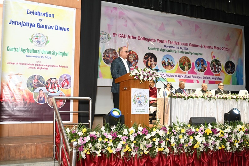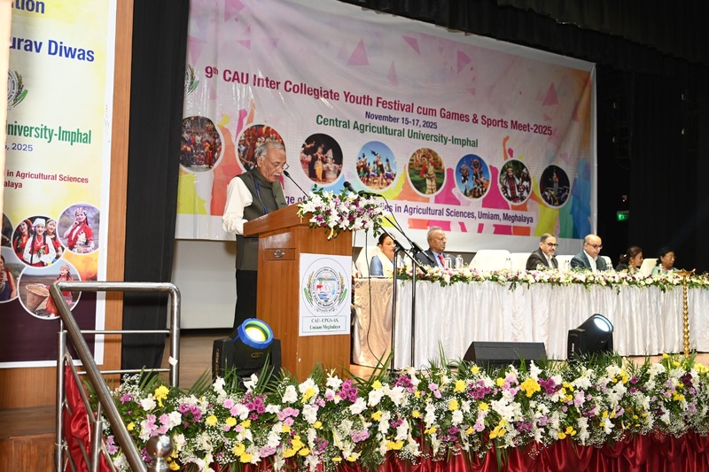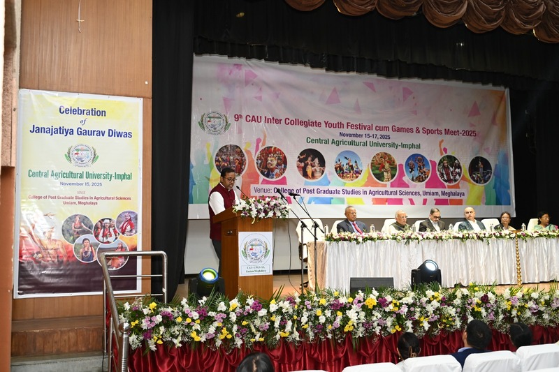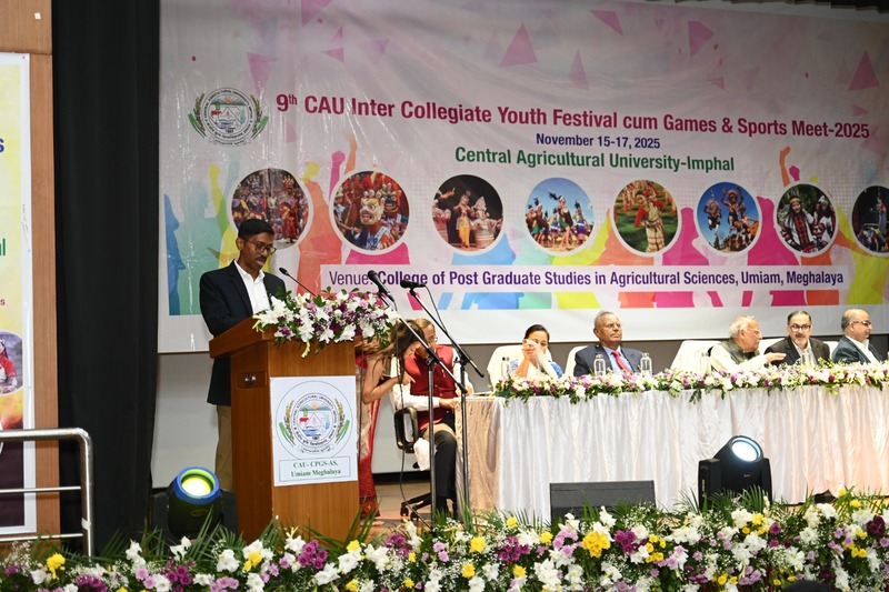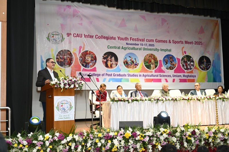Inaugural of CAU- IX Youth Festival-cum-Games & Sports Meet 2025 at CPGS-AS, Umiam. The 9th Inter-Collegiate Youth Festival-cum-Games & Sports Meet 2025 of Central Agricultural University (CAU), Imphal commenced today dated November 15th, 2025 with great enthusiasm at the College of Post-Graduate Studies in Agricultural Sciences (CPGS-AS), Umiam. This three day Youth Fest cum Sports and Games Meet organised under the leadership of Dr. Anupam Mishra, Hon’ble Vice Chancellor, CAU, Imphal will be Conducted from November 15-17, 2025 at CPGAS, Umiam. The inaugural session of the event witnessed the participation of students, faculty, and officials from across all the 13 constituent CAU campuses, marking the beginning of a vibrant celebration of youth talent, sportsmanship, and cultural unity. A grand and disciplined march past was performed by the contingents of participating colleges, showcasing their zeal and team spirit. The programme officially started by lighting of the lam