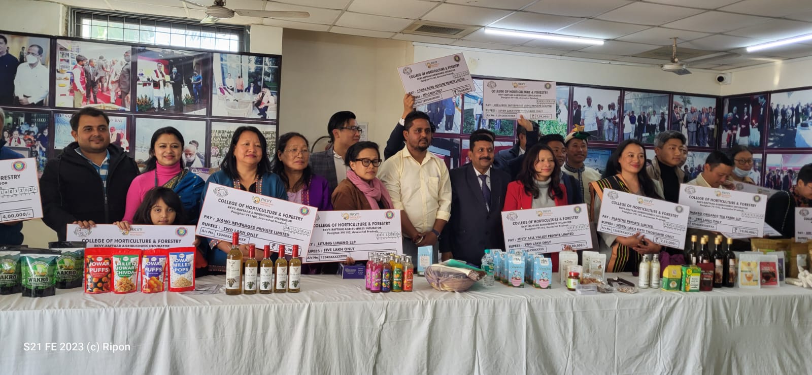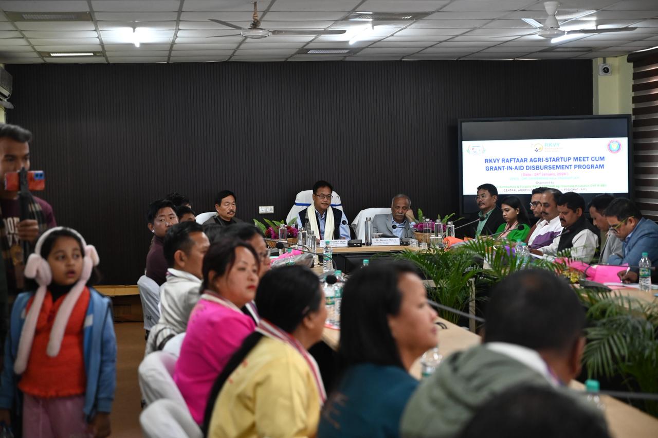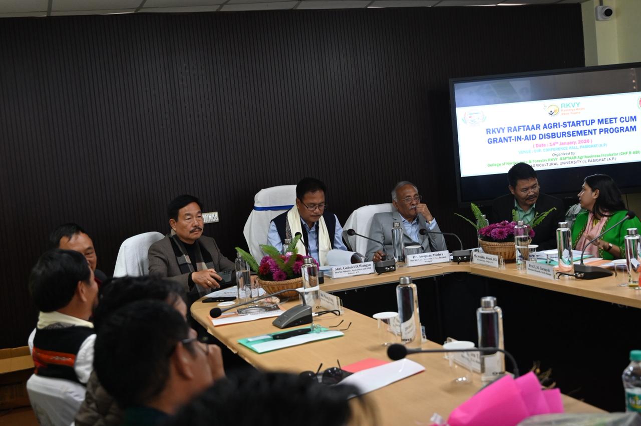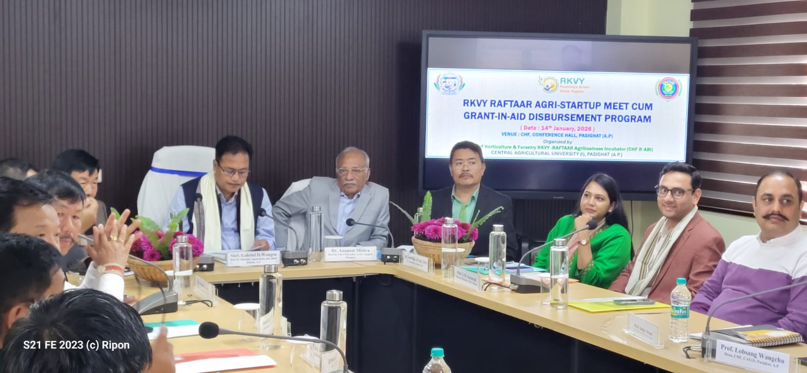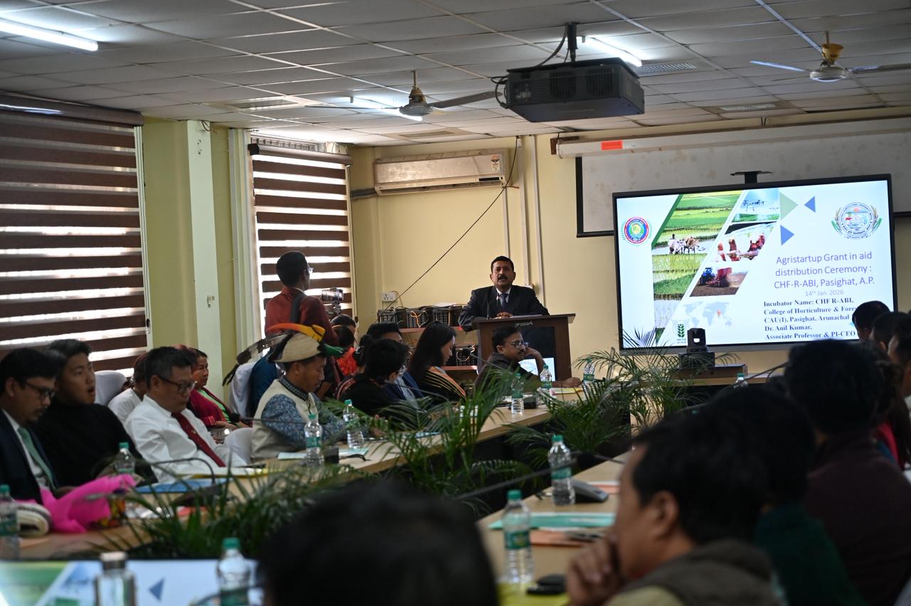 Startups Meet & Grant-in-Aid Distribution Programme CHF R-ABI Project, Conducted at CHF Pasighat on Jan 14, 2025. The inaugural session included felicitation of guests and a welcome address by Prof. Lobsang Wangchu, Dean, CHF, CAU(I), Pasighat. Dr. Anil Kumar, PI-CEO, CHF R-ABI Project, briefed participants on the Entrepreneurship Development Program. Grant-in-aid was distributed to agristartups by the Guest. Addresses were delivered by Prof. L. M. Garnayak, Director of Research, CAU; Ms. Sonalika Jiwani, IAS, Deputy Commissioner, East Siang; Dr. Anupam Mishra, Hon’ble Vice Chancellor, CAU; and Hon’ble MLAs Shri Tapi Darang, Shri Oken Tayeng, and Shri Ninong Ering.