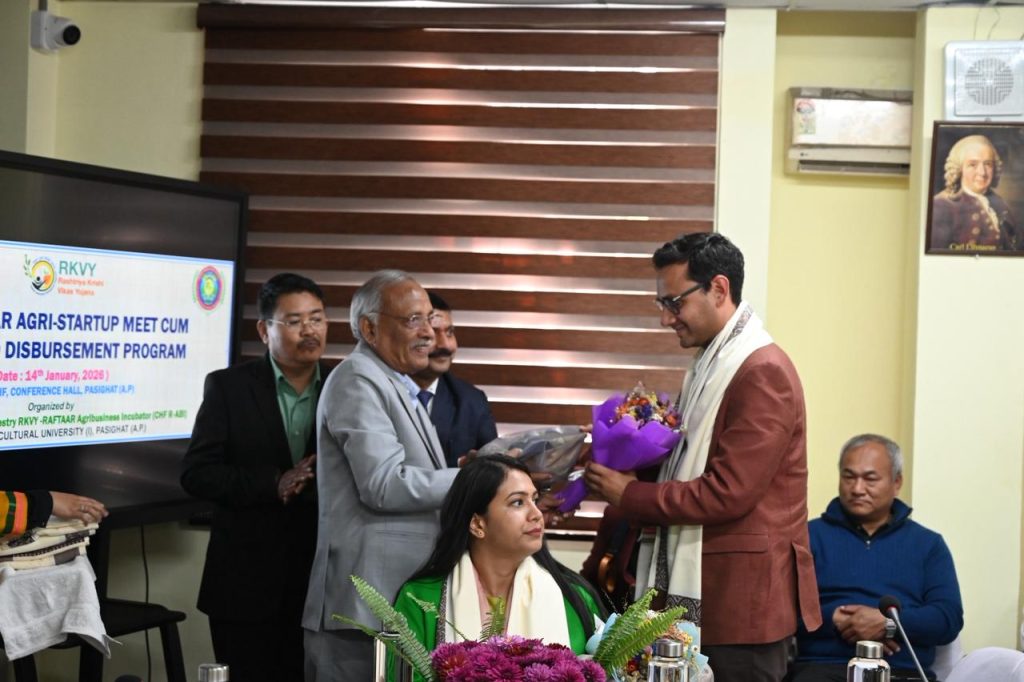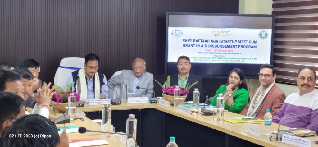 Startups Meet & Grant-in-Aid Distribution Programme CHF R-ABI Project, Conducted at CHF Pasighat today on Jan 14, 2025. The program commenced with registration of participants followed by the arrival of the Chief Guest. An exhibition visit showcased agristartups and student startups. The inaugural session included felicitation of guests and a welcome address by Prof. Lobsang Wangchu, Dean, CHF, CAU(I), Pasighat. Dr. Anil Kumar, PI-CEO, CHF R-ABI Project, briefed participants on the Entrepreneurship Development Program. Participants were introduced, followed by presentations by student startups and agribusiness startups. Grant-in-aid was distributed to agristartups by the Guest. Addresses were delivered by Prof. L. M. Garnayak, Director of Research, CAU; Ms. Sonalika Jiwani, IAS, Deputy Commissioner, East Siang; Dr. Anupam Mishra, Hon’ble Vice Chancellor, CAU; and Hon’ble MLAs Shri Tapi Darang, Shri Oken Tayeng, and Shri Ninong Ering.