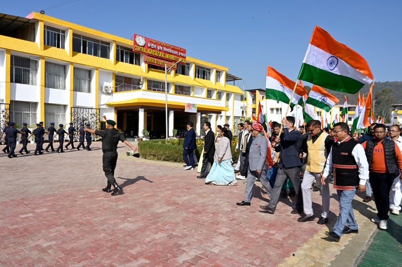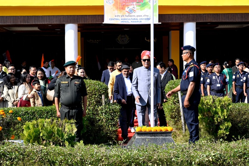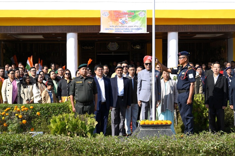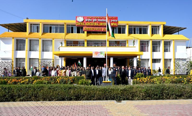 The 77th Republic Day of India was celebrated with great enthusiasm on 26th January 2026 at the headquarters, Lamphelpat, of the Central Agricultural University (CAU), Imphal. Hon’ble Vice-Chancellor, CAU, Imphal, Dr. Anupam Mishra unfurled the National Flag in the presence of Directors, Deans of Constituent Colleges, officers, faculty members, and staff of the University. The occasion was marked by patriotic fervour, reaffirming the University’s commitment to the values enshrined in the Constitution of India.