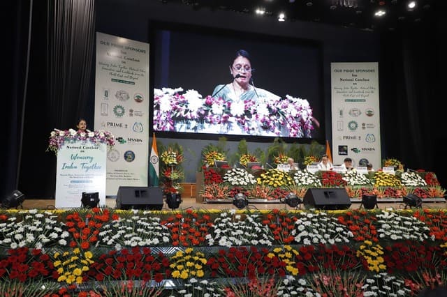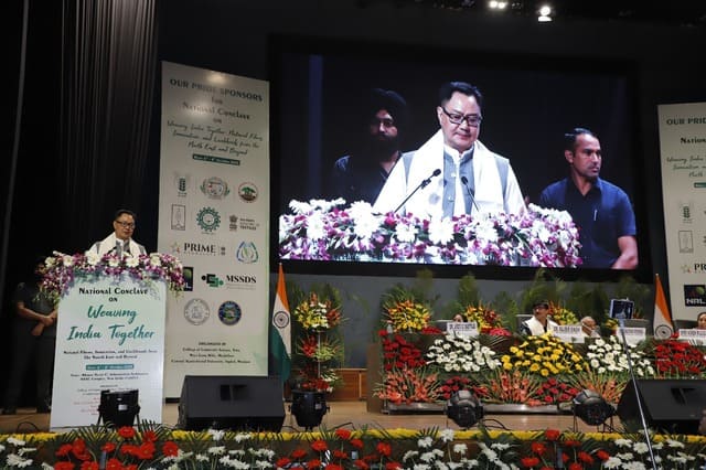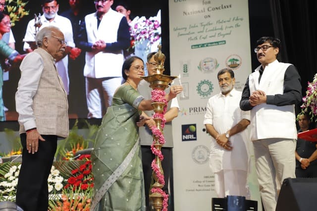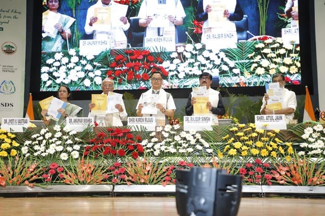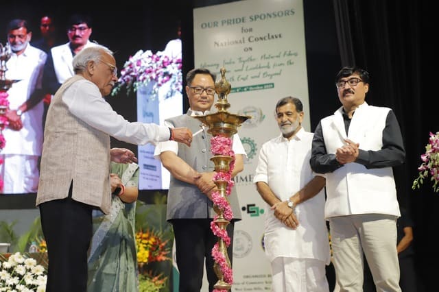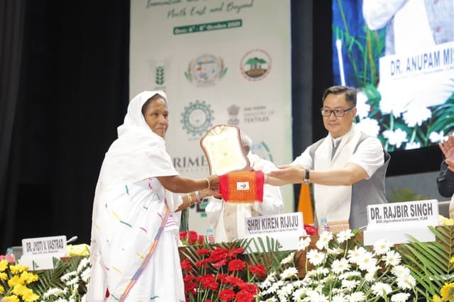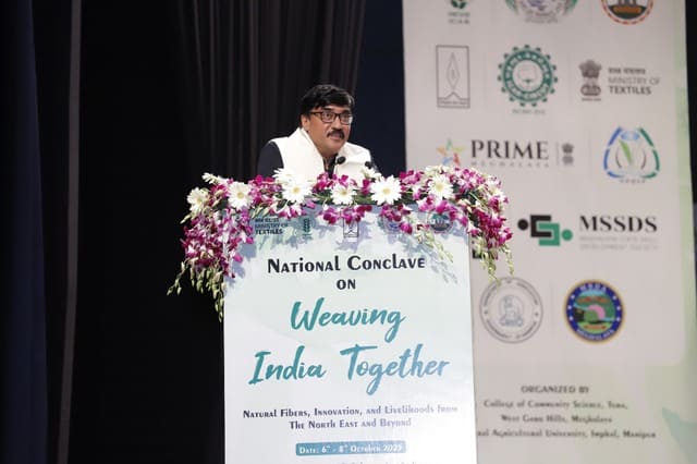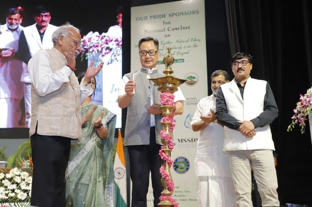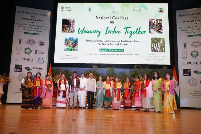 The National Conclave on “Weaving India Together: Natural Fibres, Innovation and Livelihoods from the North East and Beyond” was inaugurated today in a grand ceremony graced by Shri Kiren Rijiju, Hon’ble Minister of Parliamentary Affairs and Minister of Minority Affairs, as the Chief Guest. The event also featured Dr. Rajbir Singh, Deputy Director General (Agricultural Extension), ICAR; Shri Atul Jain, Vice Chairman, Deendayal Research Institute (DRI), New Delhi; and Dr. Mridula Thakur Pradhan, Chairperson, Vikas Foundation Trust, as Guests of Honour.