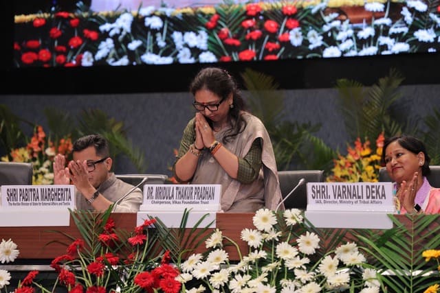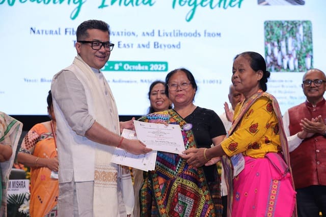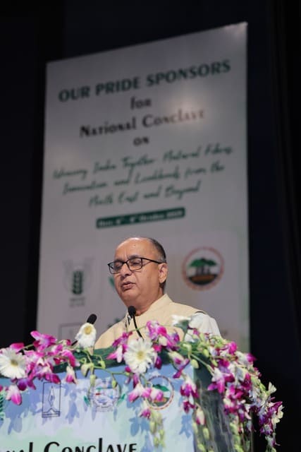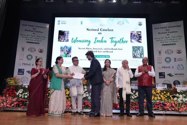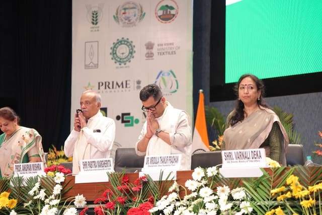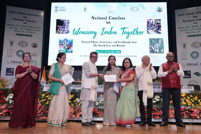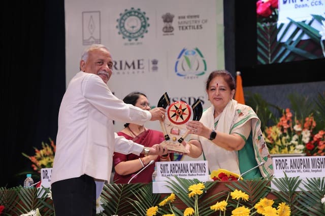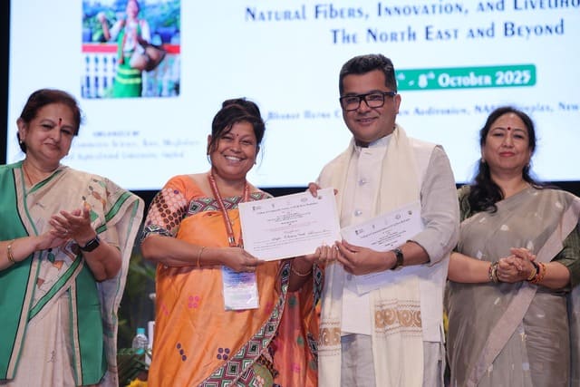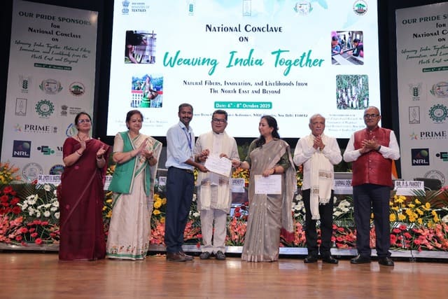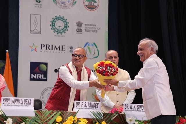 The Valedictory Programme of the National Conclave on “Weaving India Together: Natural Fibres, Innovation and Livelihoods from the North East and Beyond” was held at the Bharat Ratna C. Subramaniam Auditorium, NASC Complex, New Delhi, marking the culmination of three days of vibrant discussions and celebration of India’s natural fibre heritage. Shri Pabitra Margherita, Hon’ble Minister of State for External Affairs and Textiles, graced the event as Chief Guest and highlighted the Government of India’s vision of the 5Fs — Farm to Factory, Factory to Fabric, Fabric to Fashion, and Fashion to Foreign, underscoring the importance of a seamless and sustainable textile value chain. Guests of Honour included Smt. Archana Chitnis, Dr Varnali Deka, IAS, Dr. P. S. Pandey, and Dr. A. K. Singh. The session was chaired by Dr. Anupam Mishra, convened by Dr. Jyoti V. Vastrad, and held under the patronage of Dr. Mridula Thakur Pradhan. The conclave brought together 231 participants